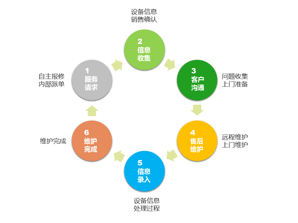 1、根据约定时间到达客户现场进行维护,在故障排出后填写服务报告书(报告书中包含设备型号、序列号、处理过程),交给客户签字确认;